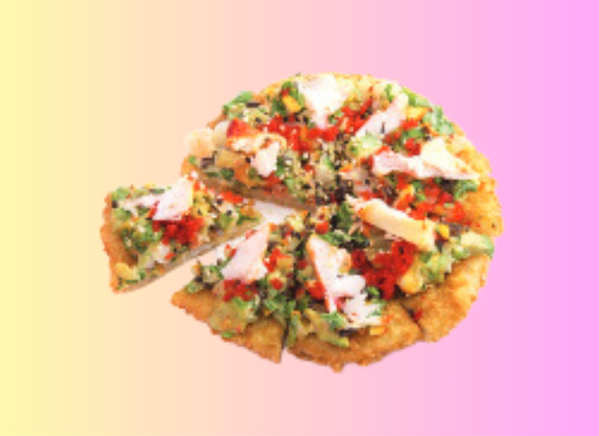 Fromage à la crème, saumon fumé, flocons de tempura, concombre, avocat