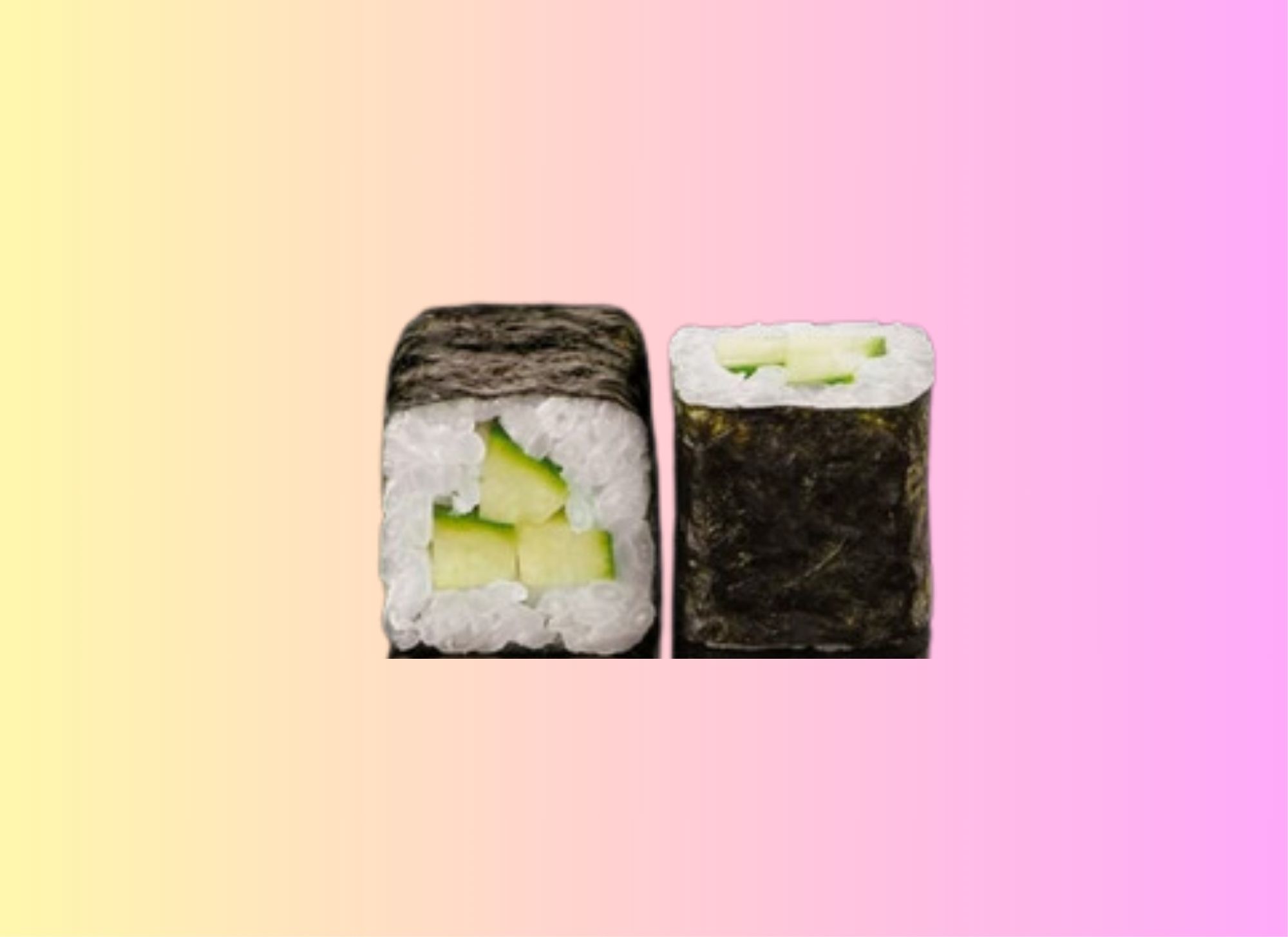 Maki enrobé de concombre, saumon, thon, oshinko, shiso, masago, sauce du chef